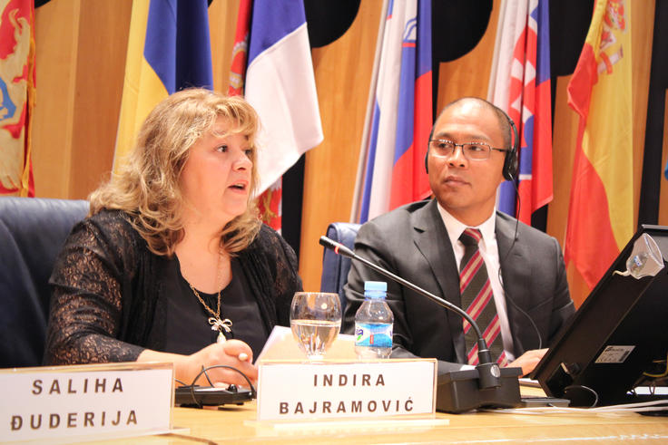 L-R: Indira Bajramovic, Chairwoman of the Committee for Roma at the Council of Ministers of BiH, and Melvin Asin, Head of Cooperation at the EU Delegation to BiH during the 27th International Steering Committee meeting of the Decade of Roma inclusion 2005 - 2015, Sarajevo, 29 September 2014 .