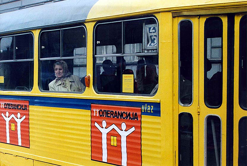 The streetcar named "Tolerance" travels the streets of Sarajevo,
