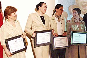 The OSCE Mission to Bosnia and Herzegovina awarded prizes for education coverage to (from left to right) Maja Anzulovic, Aida Dizdarevic, Angelina Simic and Danijela Bozic, Sarajevo, 3 June 2003.