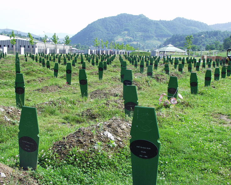 The graves of victims of the Srebrenica massacre stretch into the distance, giving some idea of the scale of the killings. Ceremonies to honour the victims will be held on 11 July 2005, the tenth anniversary of the massacre.