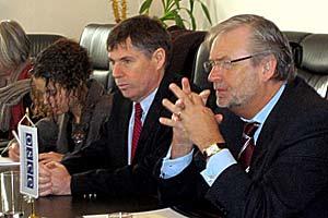 The Special Envoy of the OSCE Belgian Chairmanship, Senator Pierre Chevalier (right), with the head of the OSCE Mission to Bosnia and Herzegovina, Ambassador Douglas Davidson, in Sarajevo 7 February 2006.
