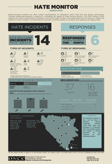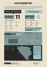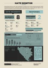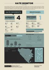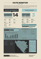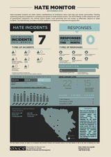 The Hate Monitor is a monthly visualization of the Mission’s hate crimes monitoring data. It presents the latest data on all known bias-motivated incidents and responses to these incidents by the justice sector, local authorities, and civil society throughout Bosnia and Herzegovina.