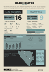 Each month, the report also highlights one response or prevention effort, to raise awareness and promote good practices in combating hate. The Hate Monitor provides data to support evidence-based policy making by local authorities and public officials.