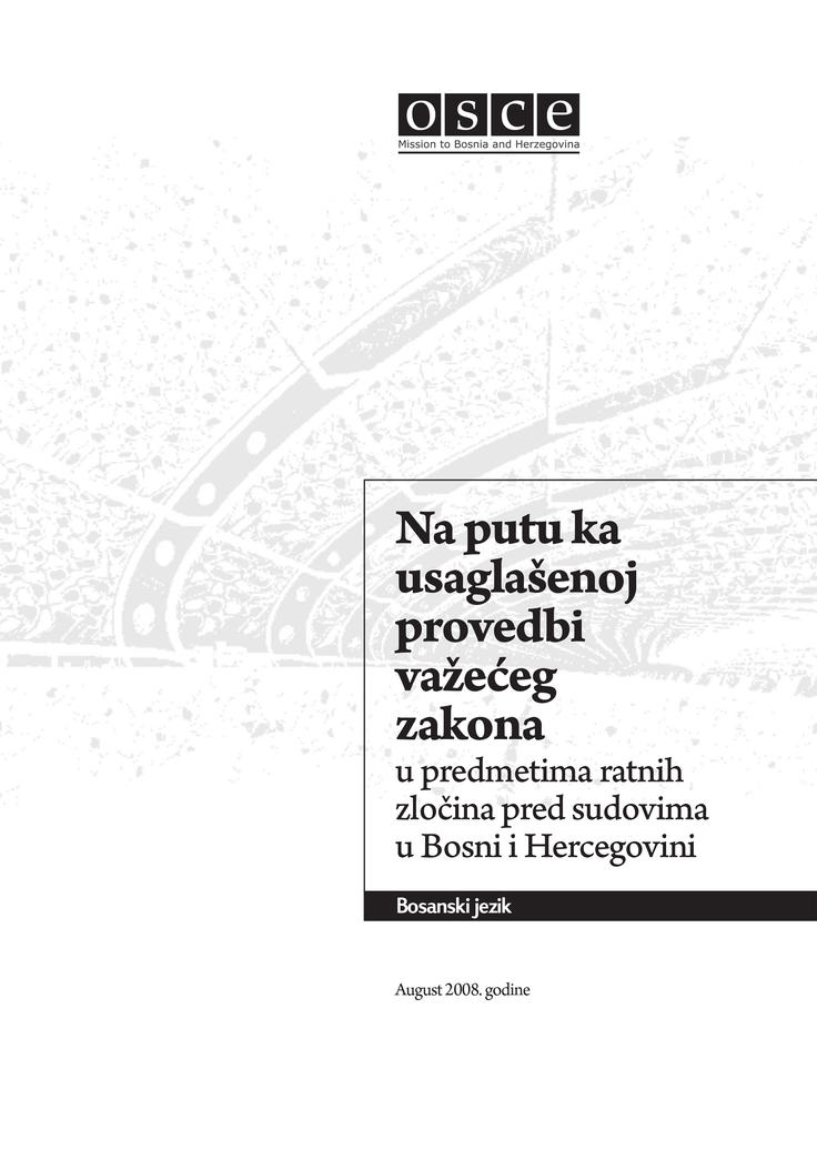 Na putu ka usaglašenoj provedbi važećeg zakona u predmetima ratnih zločina pred sudovima u Bosni i Hercegovini, naslovnica izvještaja