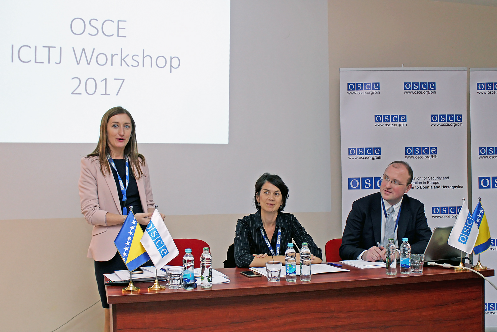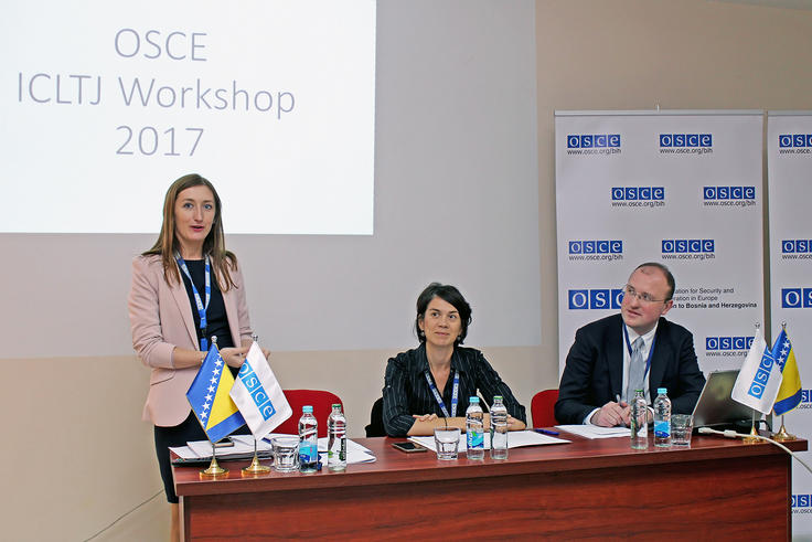 (L-D) Irma Balta, Jasna Dobricik i Nedžad Smailagić iz Misije OSCE-a u Bosni i Hercegovini na vannastavnoj radionici iz međunarodnog krivičnog prava i tranzicijske pravde, Sarajevo, 18. septembar 2017. godine