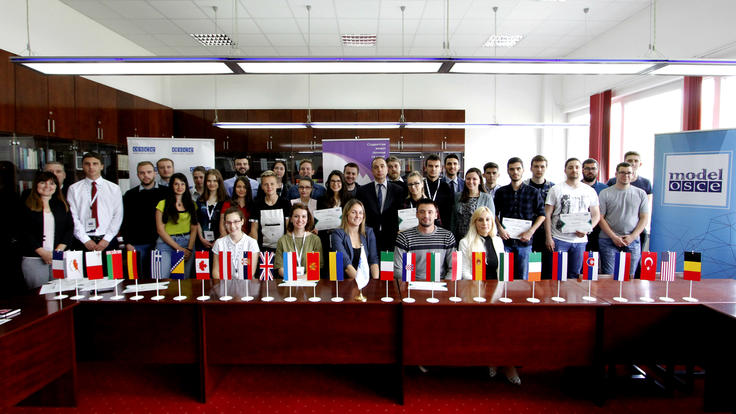 Učesnice i učesnici 'OSCE Model' radionice, koju su zajedno organizovali Misija OSCE-a u Bosni i Hercegovini (Misija), Savjetodavna grupa za mlade, koja djeluje pri Misiji i Klub studenata Fakulteta političkih nauka Univerziteta u Banjaluci; Banja Luka, 23. maj 2018. godine.