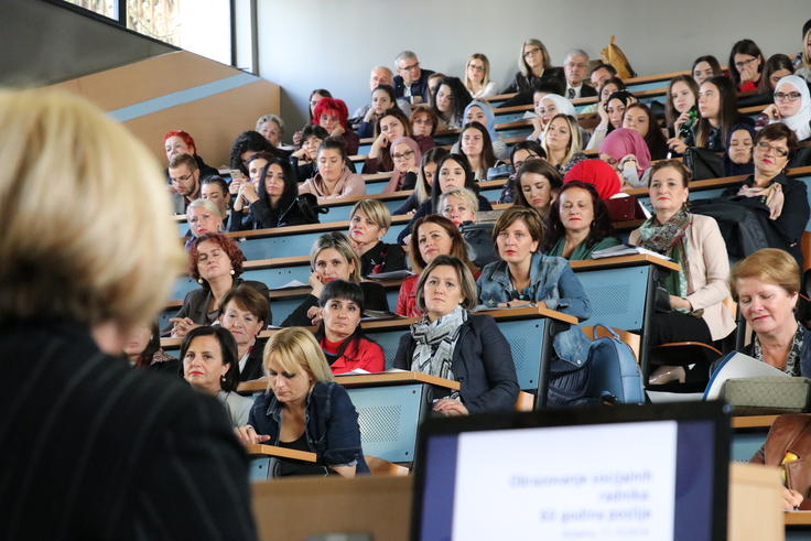 Učesnice i učesnici stručne konferencije, realizovane uz podršku Misije OSCE-a u Bosni i Hercegovini (BiH), kojom je obilježeno osnivanje Saveza udruženja socijalnih radnika BiH; Sarajevo, 11. oktobar 2018. godine