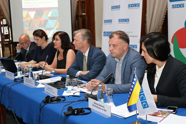 Prisutni na javnoj prezentaciji OSCE-ove publikacije: “Razumijevanje referentnih mehanizama u sprečavanju i suzbijanju nasilnog ekstremizma i radikalizacije koji vode terorizmu - upravljanje izazovima i zaštita ljudskih prava”, Sarajevo, 10. juni 2019