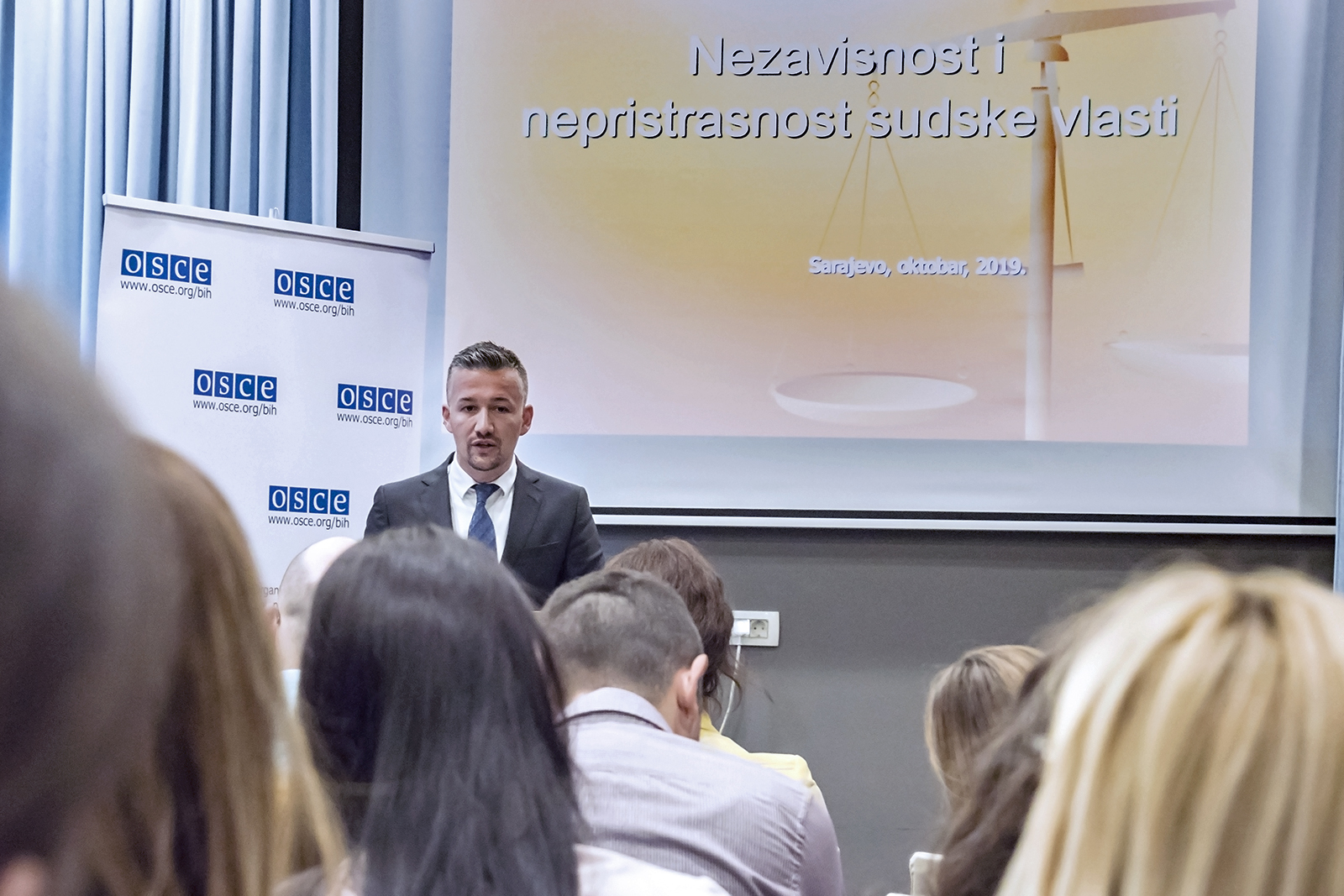 Meriton Pajaziti, Legal Advisor at the OSCE Mission to BiH, at an OSCE-organised training course on judicial ethics and professional conduct in Bosnia and Herzegovina; Sarajevo, 24 October 2019