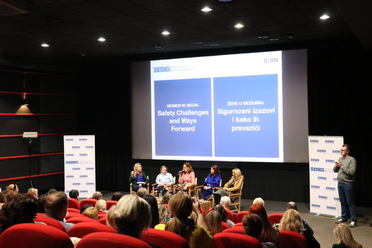Učesnice na panel diskusiju pod nazivom: Žene u medijima – sigurnosni izazovi i put naprijed, koju je organizovala Misija OSCE-a u Bosni i Hercegovini u saradnji sa Regionalnim uredom Balkanske mreže za istraživačko novinarstvo (BIRN Hub); Sarajevo, 8. novembra 2019. godine