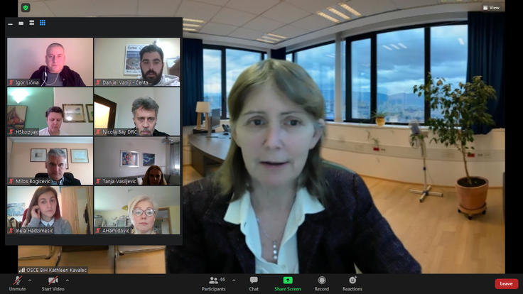 Kathleen Kavalec, šefica Misije OSCE-a u Bosni i Hercegovini, sastala se sa predstavnicima/ama nevladinih organizacija "Amnesty International", Danskog vijeća za izbjeglice, "Are You Syrious", "Save the Children", "No Name Kitchen" i "Puž" od kojih je iz prve ruke čula o nasilju na granicama i izazovima s kojima se suočavaju humanitarne organizacije, aktivno uključene u rješavanje migrantskih pitanja u Bosni i Hercegovini; Sarajevo, 25. januara 2021.