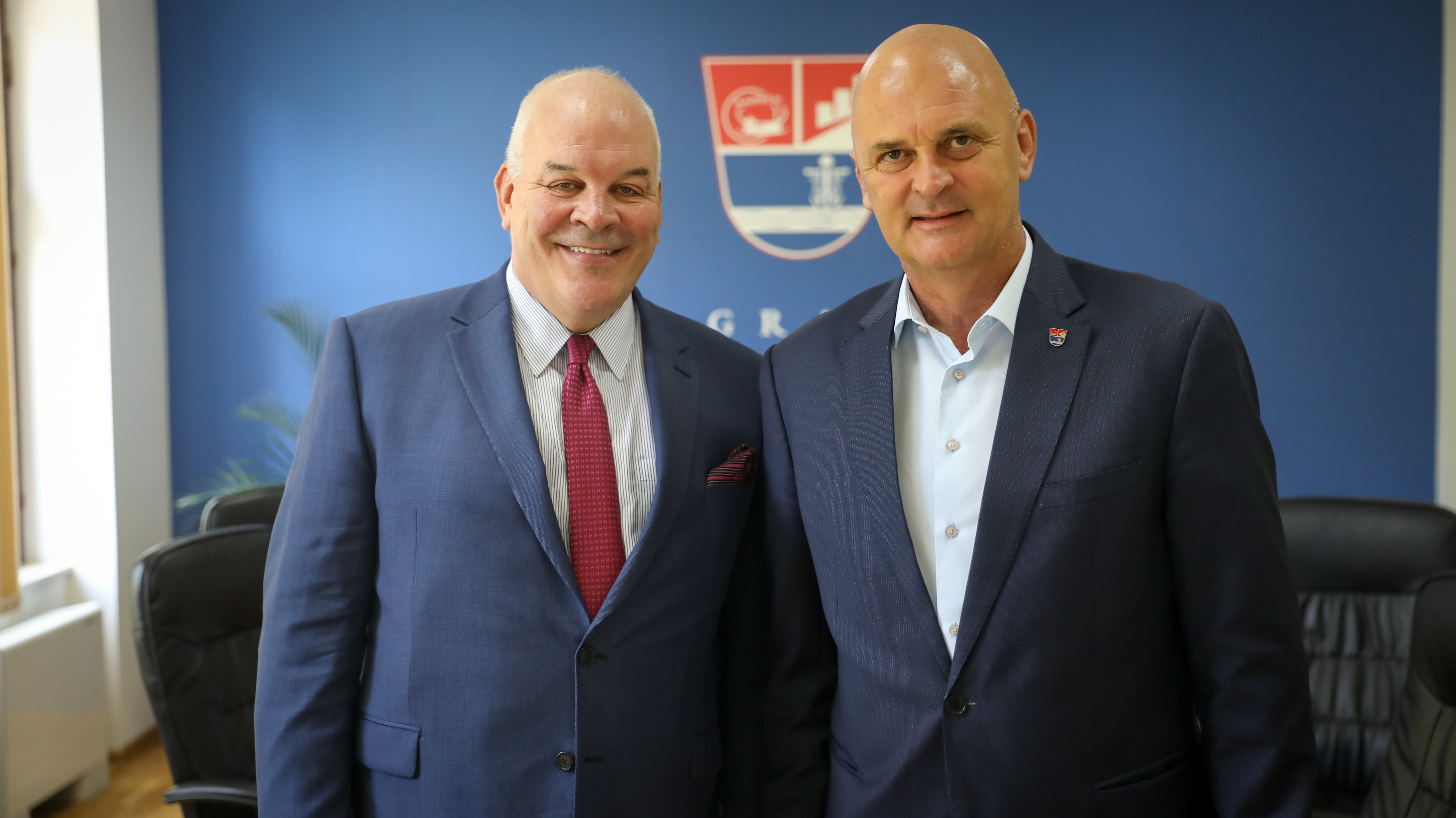 Ambasador Aggeler se sastao sa gradonačelnikom Stoca Stjepanom Boškovićem, sa kojim je razgovarao o saradnji između Misije i njenog Terenskog ureda u Mostaru i gradske uprave. STOLAC, 22. juni 2023. godine