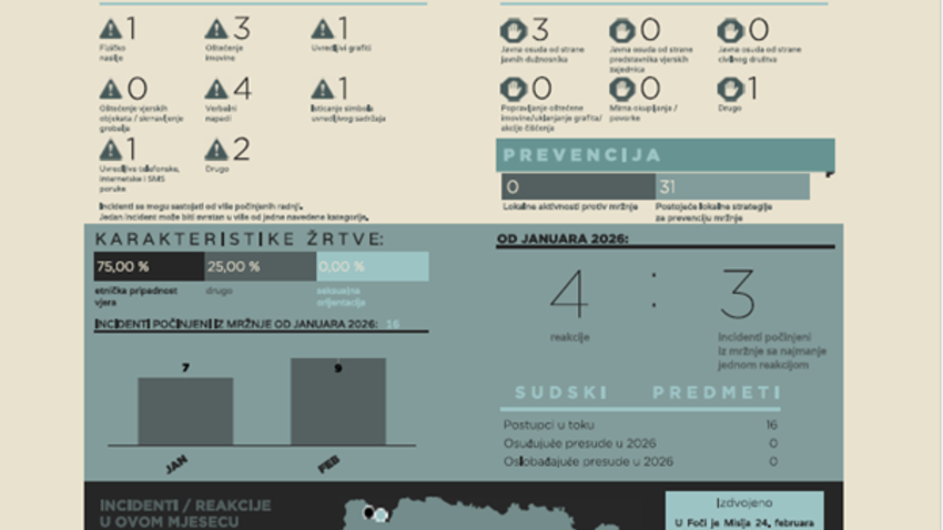 Monitor mržnje, podaci za februar 2026. godine