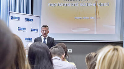 Misija OSCE-a u Bosni i Hercegovini (BiH) organizovala je obuku na temu etičkih standarda i disciplinskog postupka za sudije, tužioce i pravne saradnike, koja je održana 24. oktobra 2019. godine u Sarajevu. Obuka je organizovana u saradnji sa Centrom za obuku sudija i tužilaca Federacije BiH.