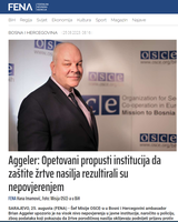 Aggeler: Opetovani propusti institucija da zaštite žrtve nasilja rezultirali su nepovjerenjem, FENA, 25. august 2023. godine