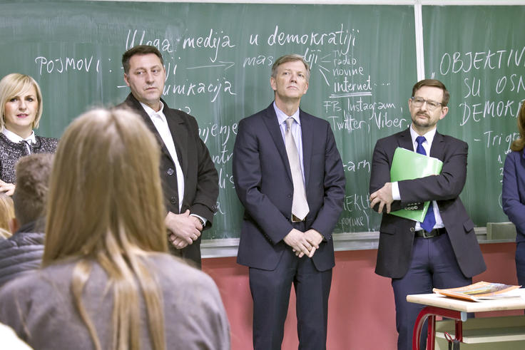 The OSCE Secretary General Thomas Greminger (r) and the OSCE Mission to Bosnia and Herzegovina Head, Bruce G. Berton during the visit to the secondary school Vitez; Vitez, Bosnia and Herzegovina, 20 February 2018.