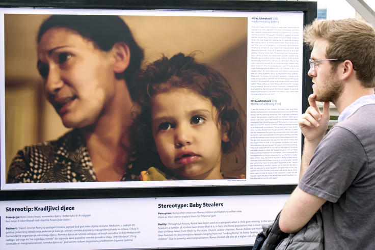 A visitor at the OSCE supported public presentation of the 'On the margins' photo-exhibition by the Post-Conflict Research Center (PCRC); 28 June 2018