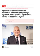 Aggeler: I appeal to political leaders to stop the divisive rhetoric that sows fear among people and moves that challenge Dayton, Večernji list, 1 May 2023